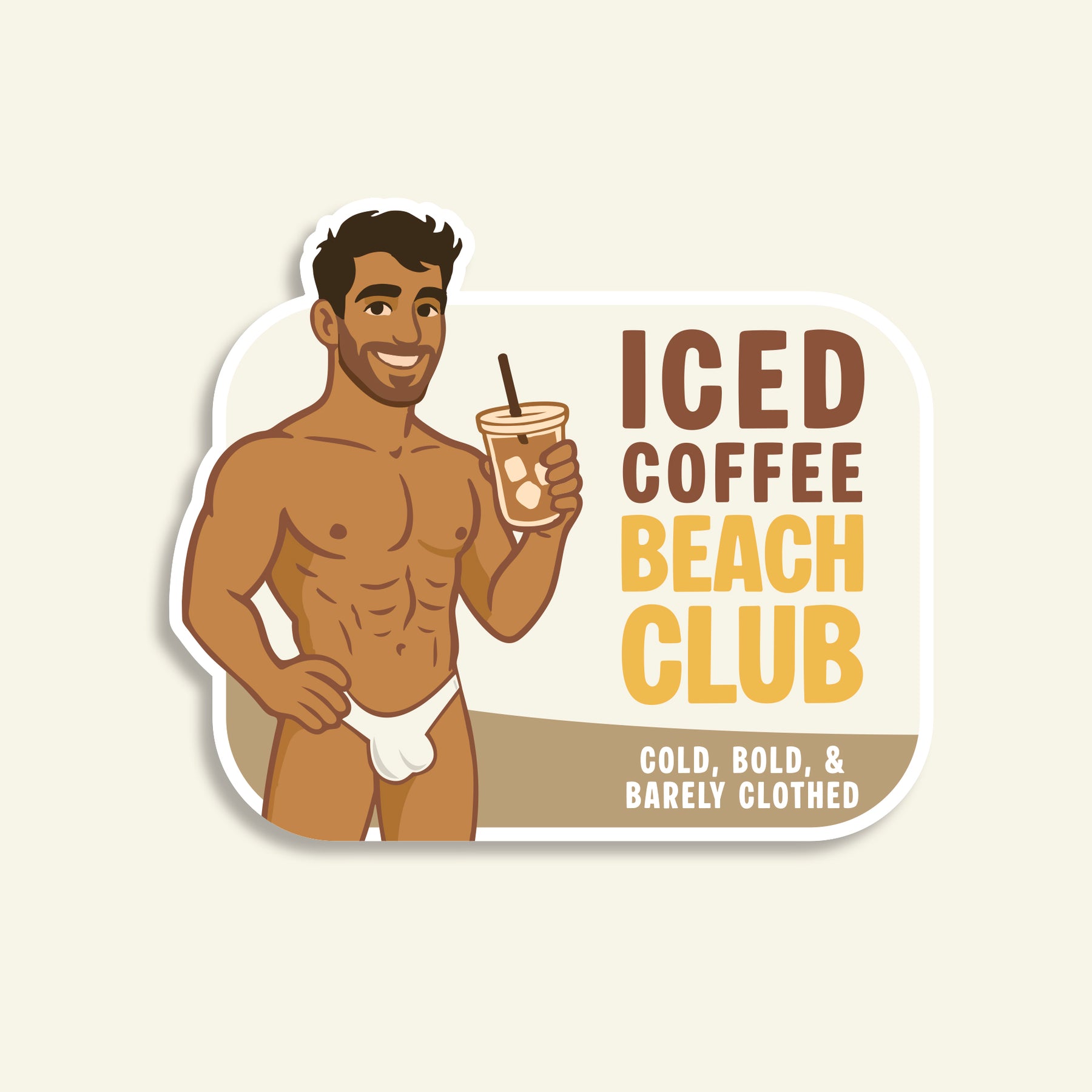 This vinyl cutie is ready to tag along on your cooler water bottle or laptop all summer long. Perfect for iced coffee lovers, speedo fans, bikini babes, thong enthusiasts, and anyone who believes less fabric means more fun.